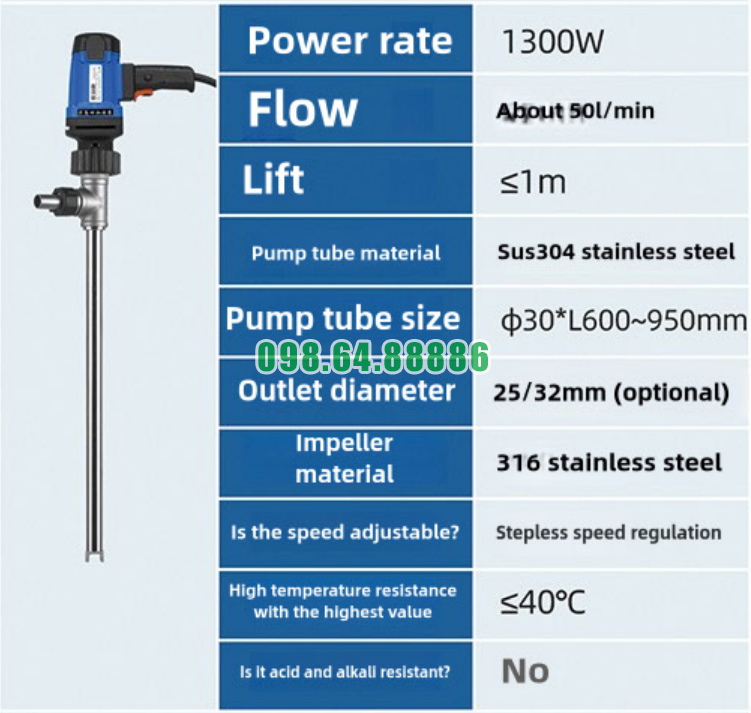Vật liệu inox SUS304 có khả năng dẫn điện tốt hơn so với nhiều vật liệu nhựa, giúp giảm tích tụ tĩnh điện khi bơm chất lỏng. Nhờ đó, Bơm thùng phuy JDT-1300W-30 SUS304 hạn chế nguy cơ phóng tĩnh điện – yếu tố nguy hiểm khi làm việc với chất lỏng dễ cháy.