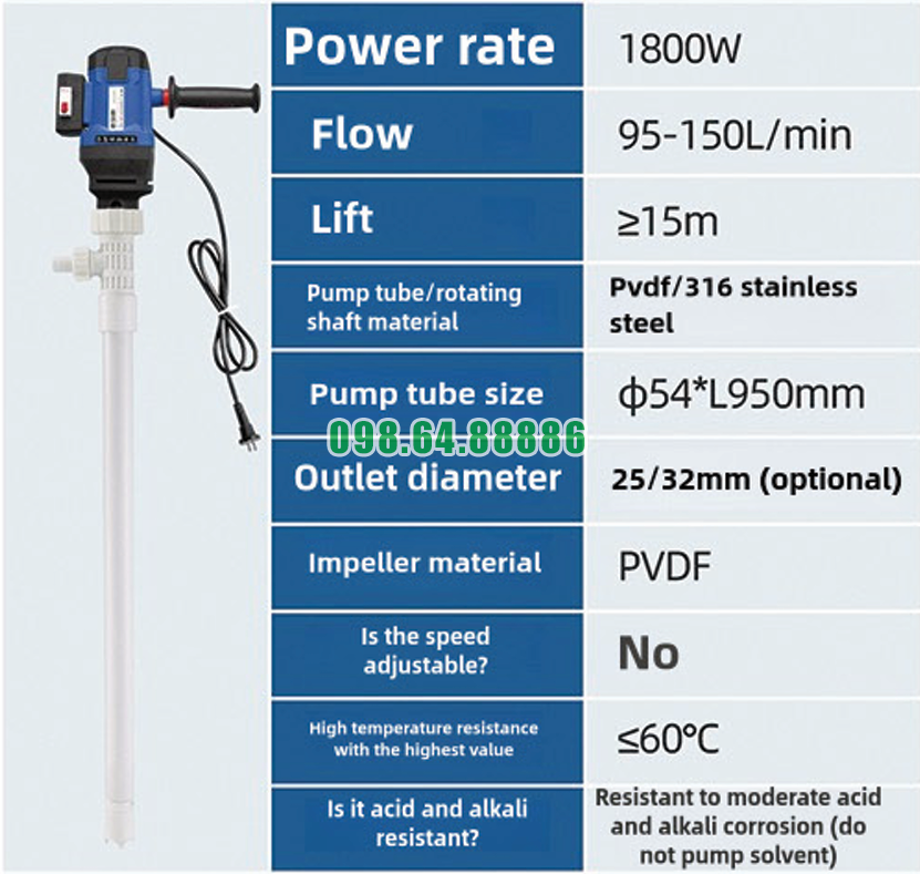 Tại sao nên chọn mua Máy bơm điện bơm chất lỏng thùng phuy JDT-1800W-PVDF cho công nghiệp