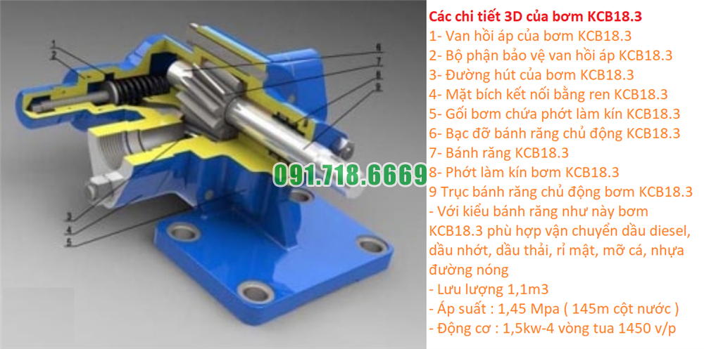 Tổng đài liên hệ mua máy bơm bánh răng KCB18.3 có đường kính 21mm
