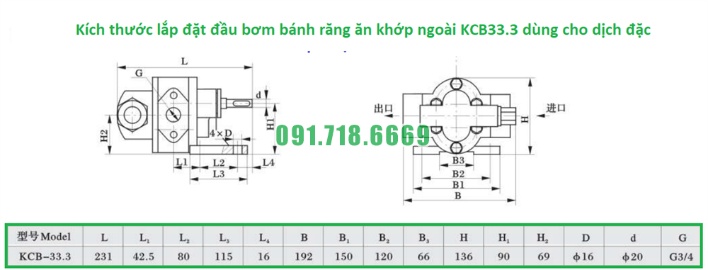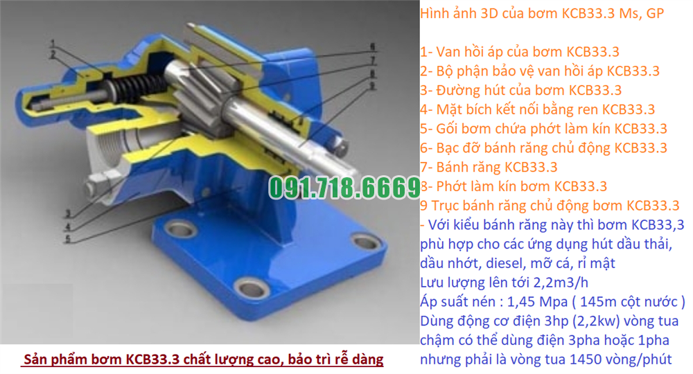 Tổng đài liên hệ mua máy bơm bánh răng KCB33.3 có lưu lượng 33.3 lít/phút