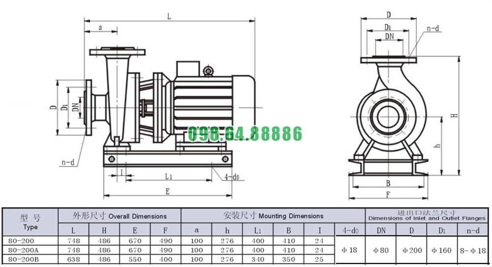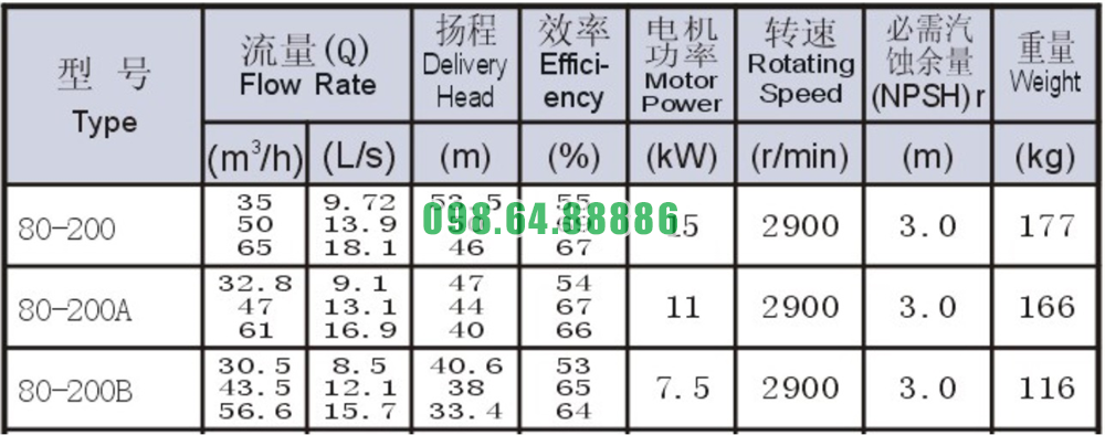 Bơm li tâm trục ngang SLW80-ISW80-200 lưu lượng 18.1 L/s hoặc 65 m3/h
