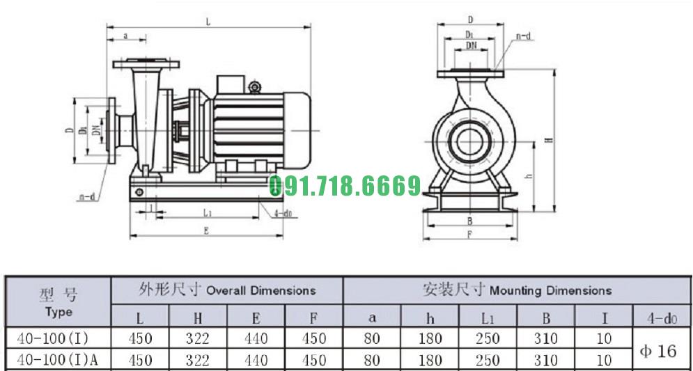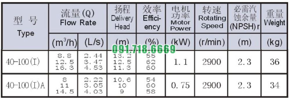 Bơm nước nằm ngang mã SLW-ISW40-100-I động cơ 1.1 kw