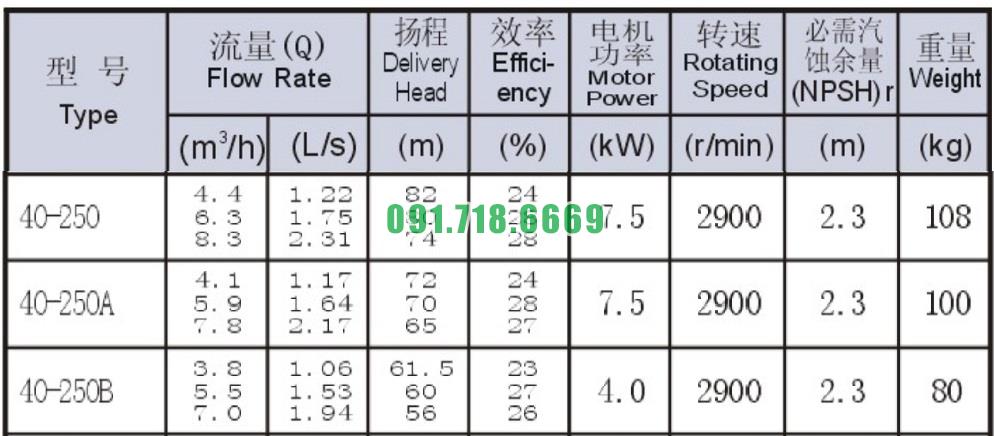 Bơm nước nằm ngang SLW-ISW40-250 năng suất từ 24% - 28%