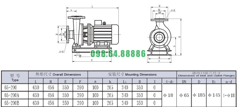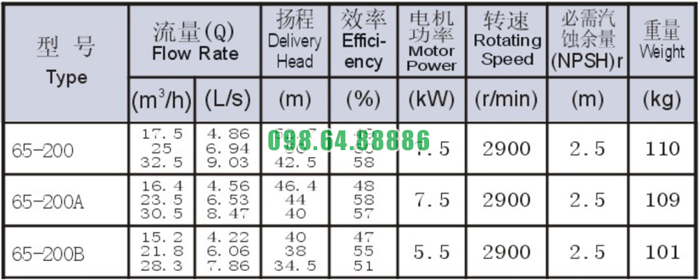 Bơm nước nằm ngang SLW-ISW65-200 công suất 7.5 kw
