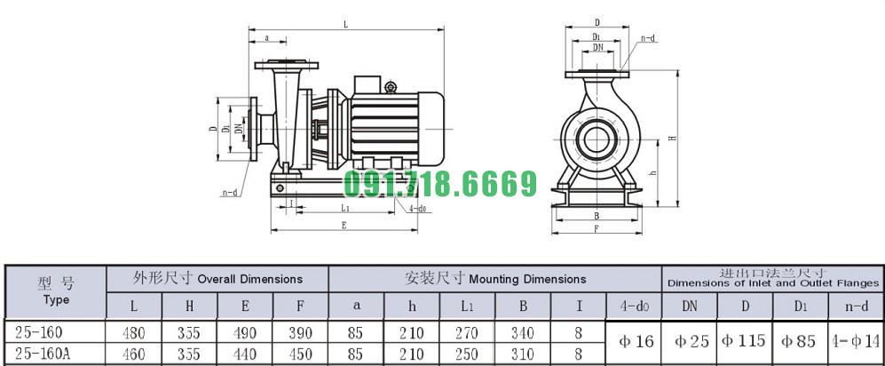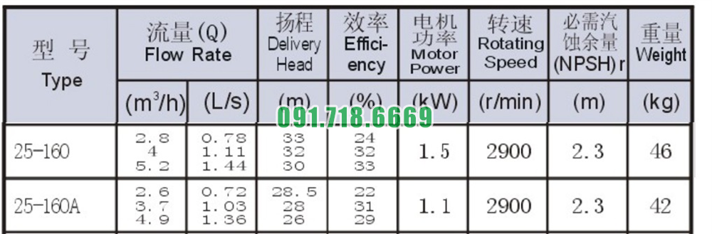 Bơm nước trục ngang ISW25-160 động cơ 1.5 kw