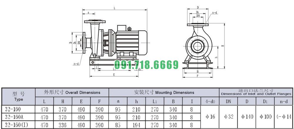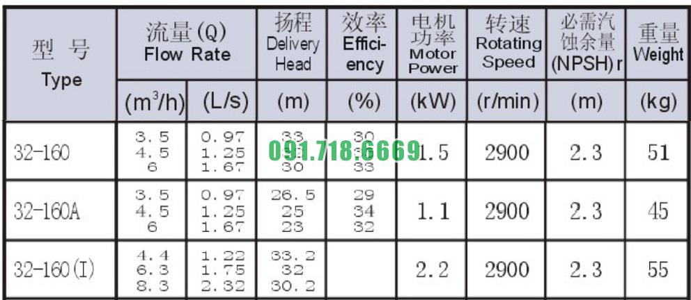 Bơm nước trục ngang ISW32-160 đẩy cao max 33m