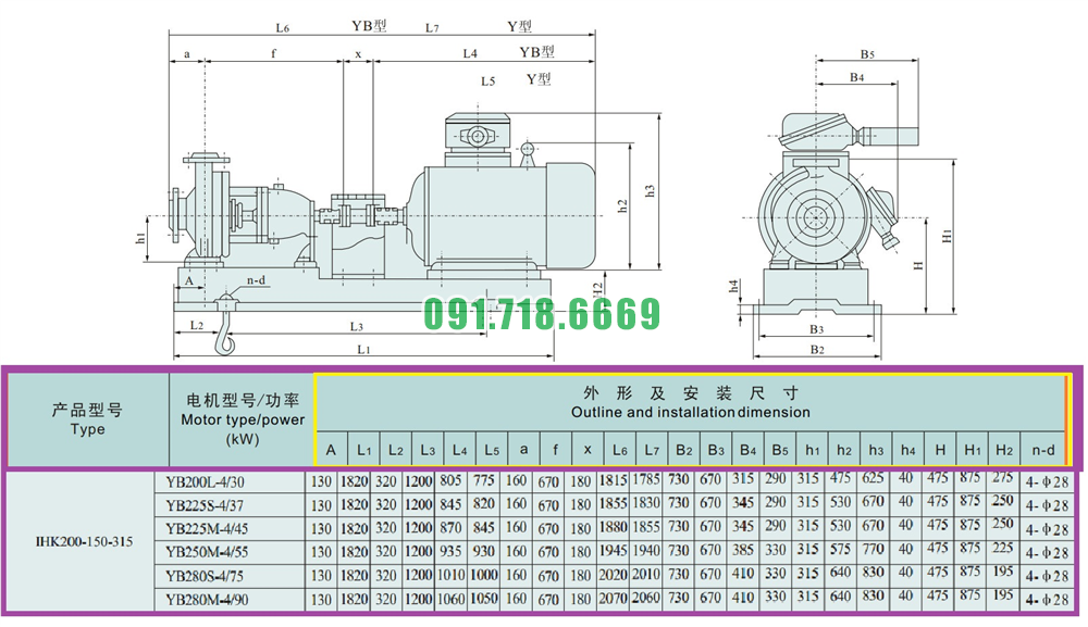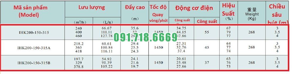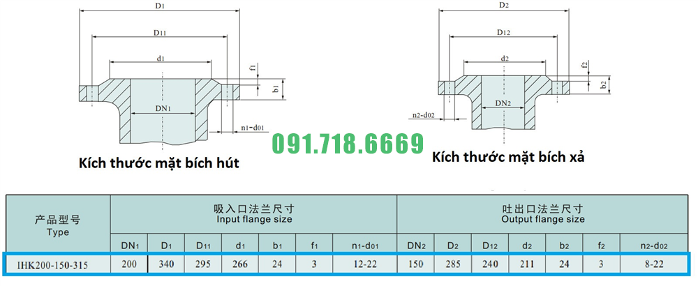 Đại lý máy bơm nước li tâm cánh hở IHK200-150-315 kích thước Dn200