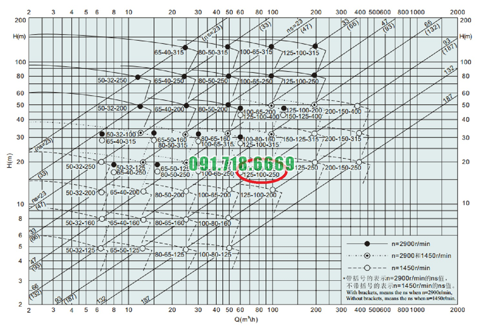 Bảng lưu lượng của máy bơm nước công nghiệp cánh hở IHK100-80-125