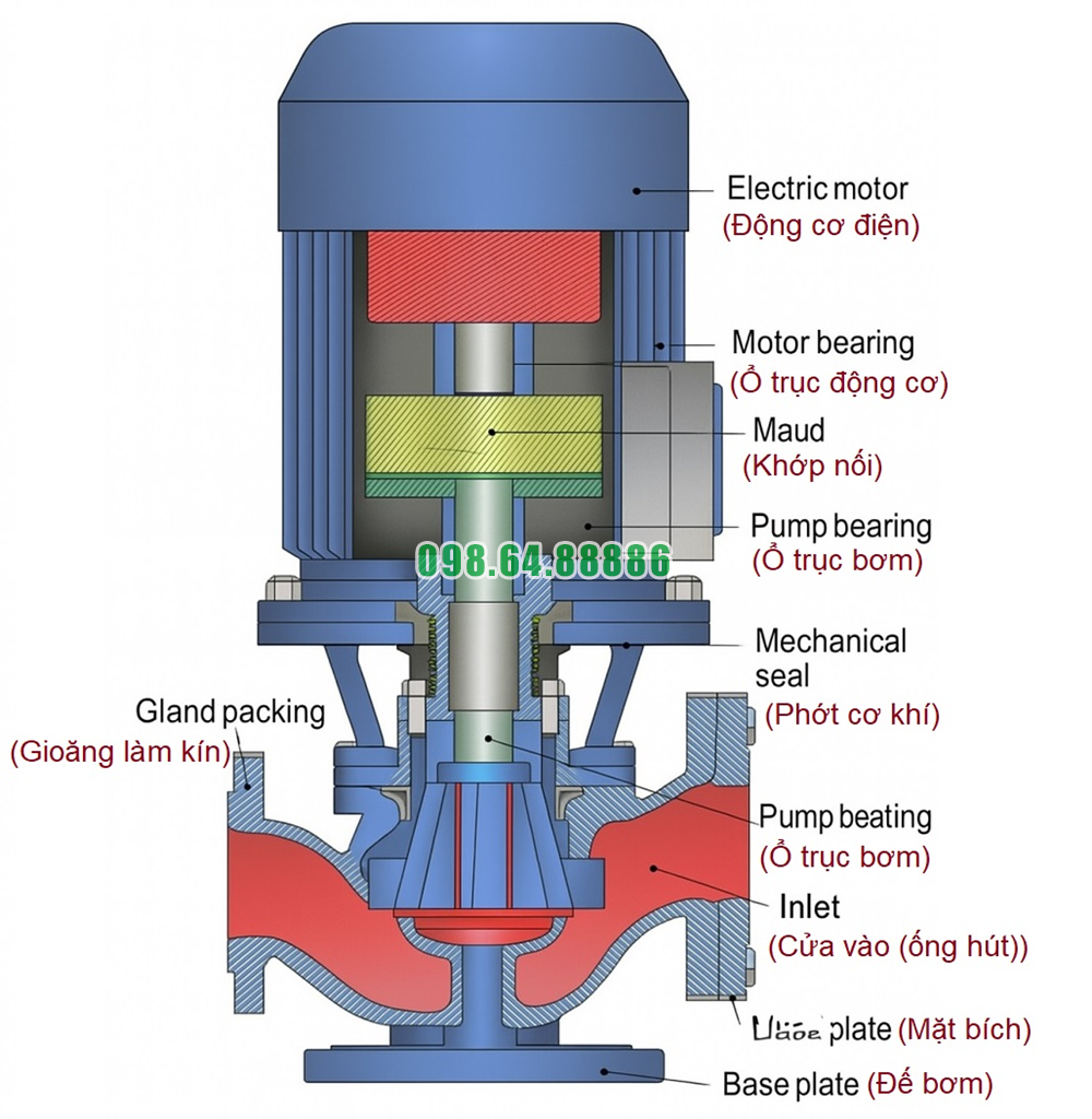 – Gắn ở phần trên cùng của bơm, nằm trên đế bệ hoặc giá đỡ