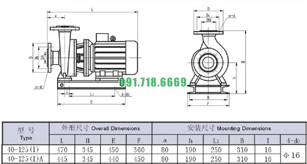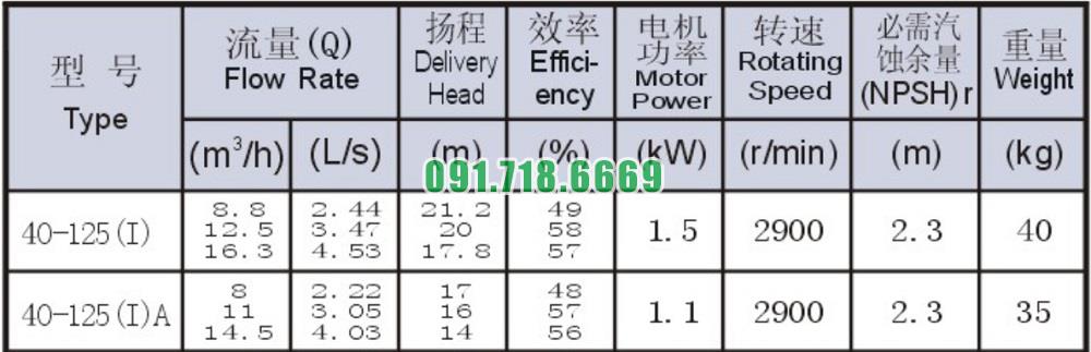 Bơm nước nằm ngang SLW-ISW40-125-I năng suất từ 49% - 58%